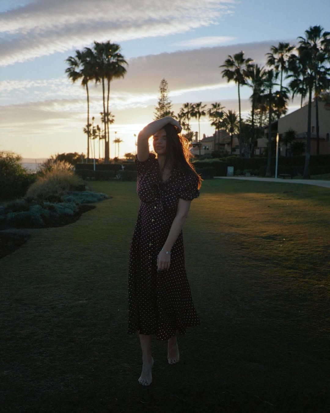 Екатерина Усик поделилась легкими и непринужденными фото с из Испании. Жена Усика для своего образа использовала простенькое коричневое платье в точку, которое идеально подчеркнуло красоту девушки и добавила ей очарования.